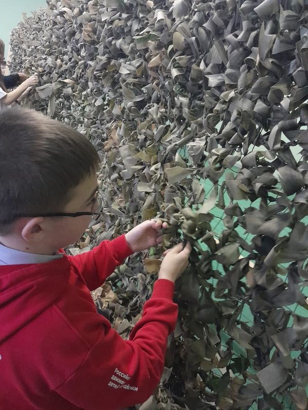 Сегодня активисты Движения Первых 7 «Б» Милютинской средней школы провели акцию в поддержку участников специальной военной операции. Вместе с наставниками ребята плетут маскировочные сети, которые будут переданы в зону боевых дейтсвий!