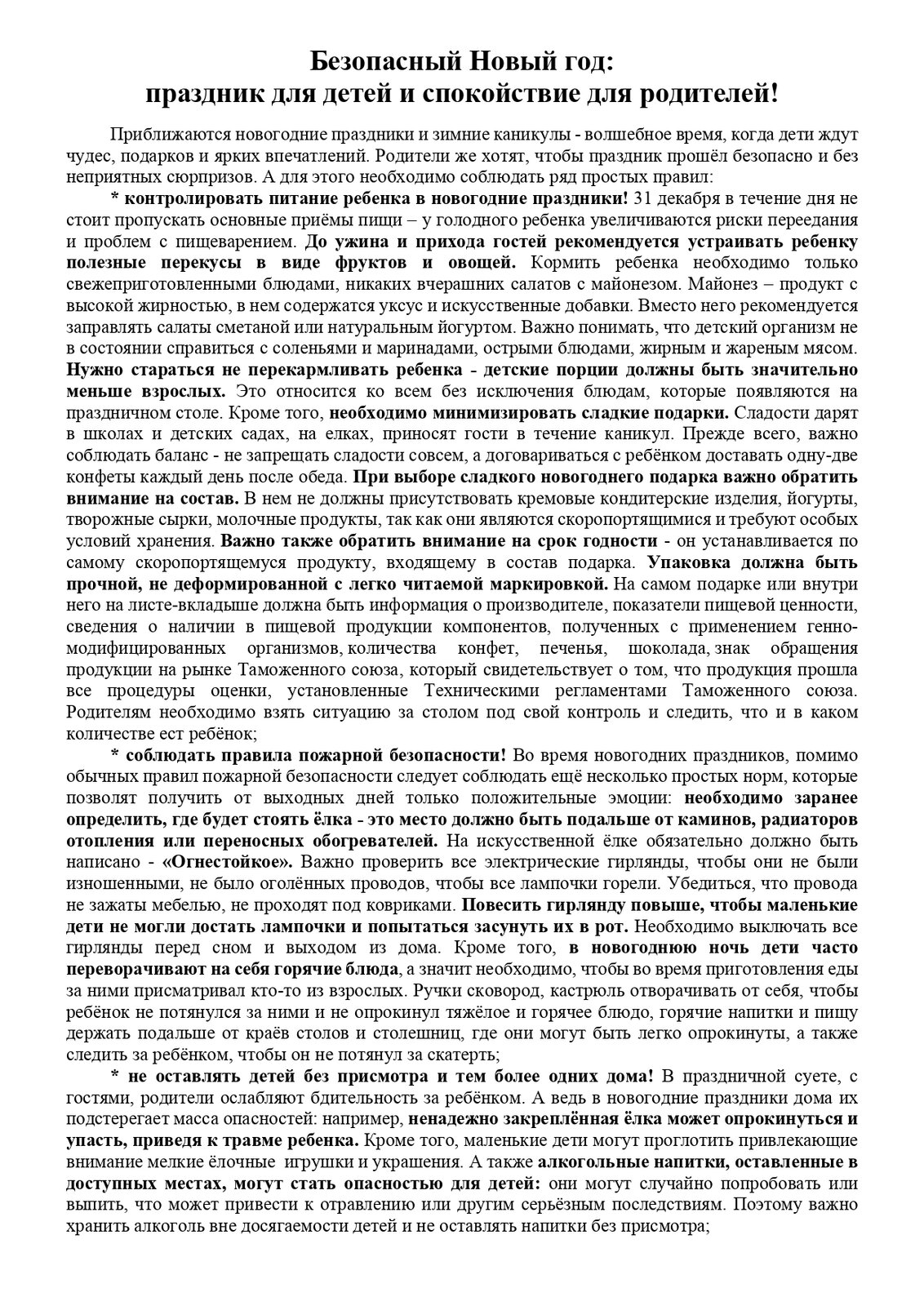 «Безопасный Новый год: праздник для детей и спокойствие для родителей!»